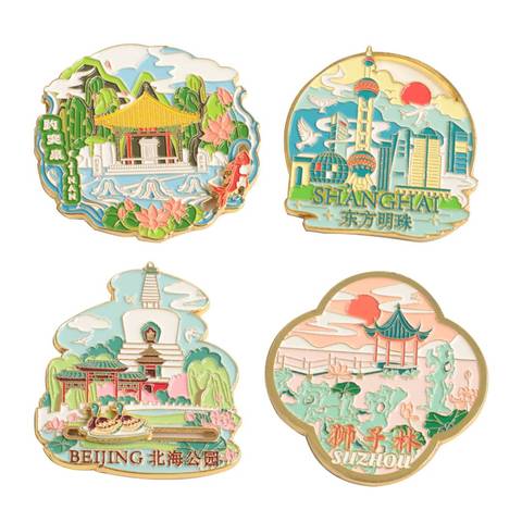Imanes de nevera de metal de diseño personalizado únicos, medallones de obras de arte, puntos de referencia para recuerdo de viaje
